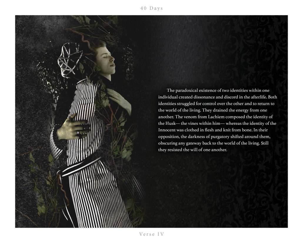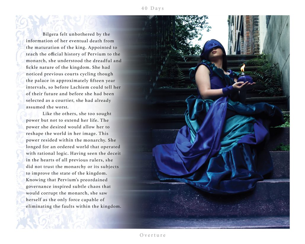 40 Days is a contemporary fairy tale split between written narrative and art photography.